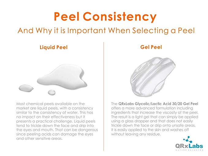 - GEL PEEL: contrary to many other chemical face peels on the market, this product is a light gel and NOT A LIQUID. This helps prevent the product from trickling down your face or dripping into your eyes or mouth.